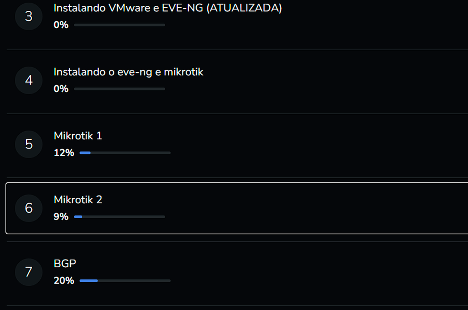 É uma formação completa, com tudo o que você precisa para se tornar um Analista de Redes profissional, do zero ao avançado. São vídeos, materiais de apoio e tutoriais completos para aprender tudo sobre o universo de Redes.